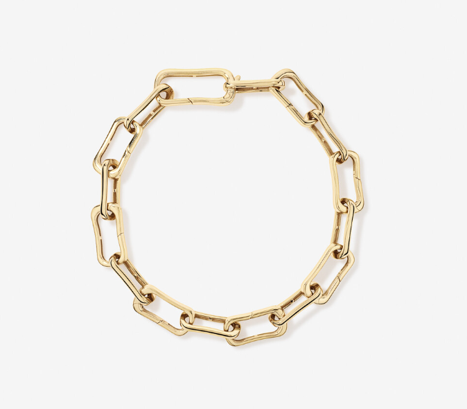 Crafted in 925 sterling silver with a generous layer of 18kt yellow gold vermeil, this 20.5cm link bracelet features a modern paperclip-inspired design with alternating closed and clasp-style links. A larger hidden-lever link allows for easy fastening, while the bracelet is designed to carry and stack Pendant Bar pendants for a personalised charm look. Maximum of two pendants per link. Extension links can be purchased separately to achieve a customised length.