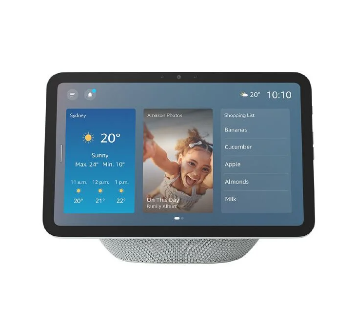 The seamlessly designed 8.7" smart display features a vibrant HD touchscreen, fast performance, and a built-in smart home hub. Available in two colours: Glacier White & Graphite.