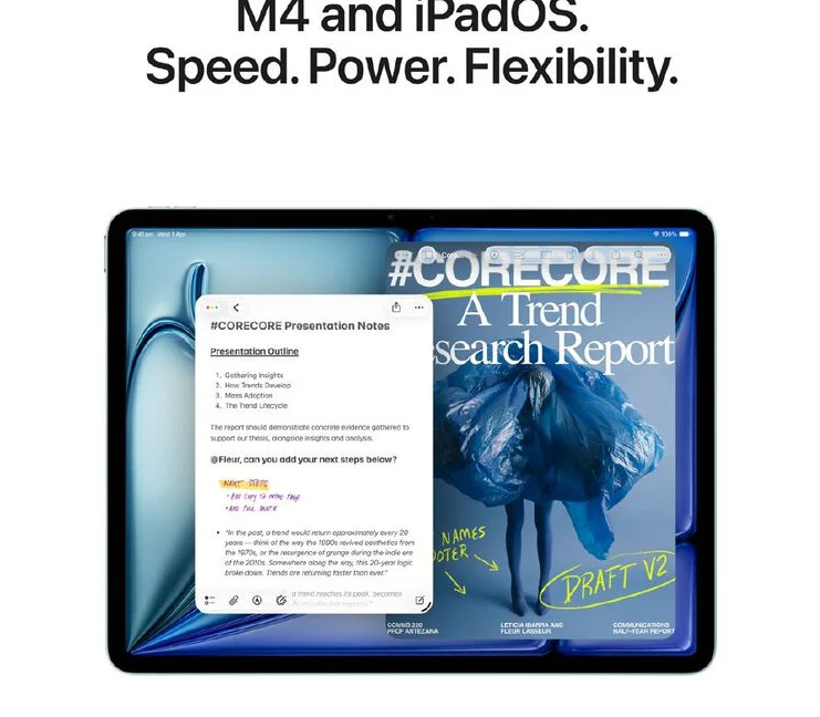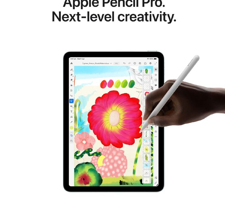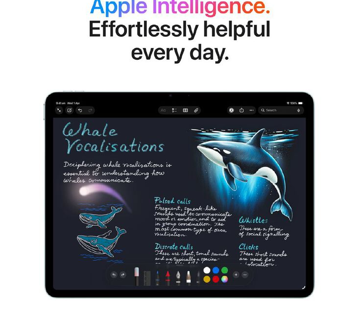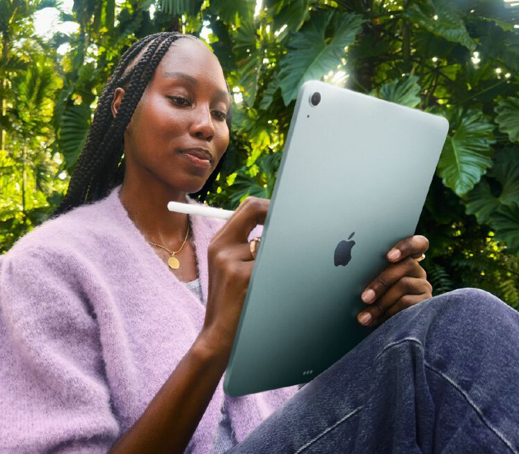 The 13-inch iPad Air. Built for Apple Intelligence. iPad Air, now supercharged by the Apple M4 chip. Powerfully capable and affordable. It features a stunning Liquid Retina display, a 12MP Center Stage front camera for great video calls, iPadOS, and blazing-fast Wi-Fi 7 and 5G. And it works with Apple Pencil Pro, Magic Keyboard for iPad Air and more, so you can multitask, study, work, play and create with ease.
