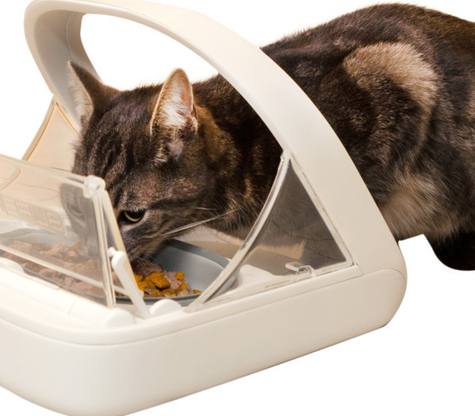 The feeder recognises your pet's microchip or collar tag, only opening for them. Designed for multi-pet homes to stop pets stealing each other's food. Ensures that prescription food is consumed by the right pet. Great for pets on weight management diets. Compatible with all identification microchips worldwide. Works with the Sureflap RFID collar tag (one tag included). Suitable for both wet and dry food. Allows cats to naturally graze throughout the day without the worry of their food being eaten or contaminated.