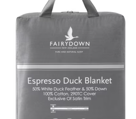 The Fairydown Espresso Feather & Down Blanket features a duck down and feather blend encased in quilted cotton with a coloured satin border on all four sides. The generous sizing allows this attractive blanket to be tucked in or draped over your bed.