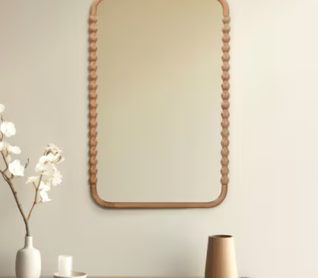 The Tilly Home Bobbin Wall Mirror features a unique wavy frame that brings a touch of elegance and character to your space. Crafted from a combination of MDF and rubber wood, it offers both durability and style. The natural finish complements a wide range of interiors, making it a versatile addition to any room.