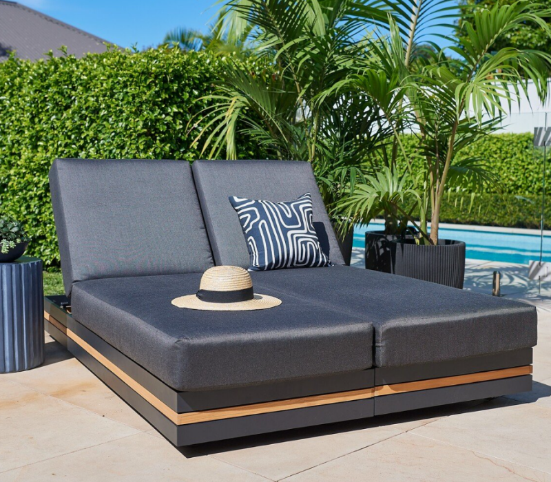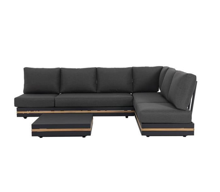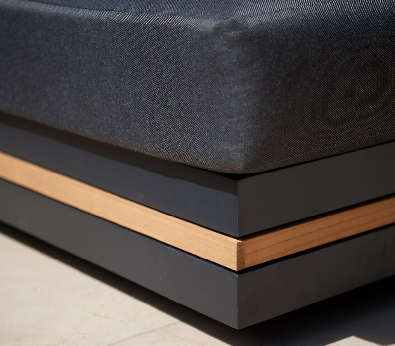 This corner lounge setting invites you to unwind in style. The Cypress Collection features warm teak accents and comfortable cushions, creating a relaxing space. Arrange it as a sunbed or keep it as a lounge — it's up to you. A modern setting that enhances your outdoor living.