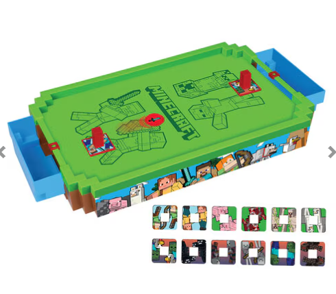 Players can even switch out pusher covers to represent their favourite Minecraft characters - adding a unique layer of fun to every match! The compact design fits perfectly in bedrooms, playrooms, dorms, or anywhere family and friends gather. Whether you're hosting a tournament or just playing a few friendly rounds, this Minecraft Air Hockey Table delivers nonstop action and hours of fun for fans of all ages. It's the ultimate way to bring the Minecraft universe into your home! Puck glides effortlessly on a cushion of air! Switch out the pusher covers to play with your favourite character! Features Minecraft music! Perfect for small spaces, including apartments. For 2 players. Recommended for ages 6 and over. Requires 3 x 1.5V AA batteries (not included).