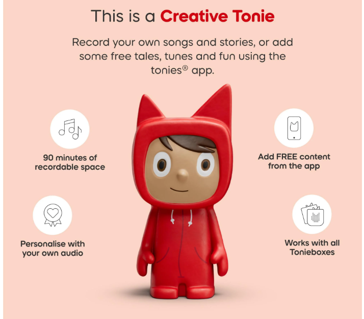 - Includes the Creative Tonie Rubie with space for up to 90 minutes of custom audio