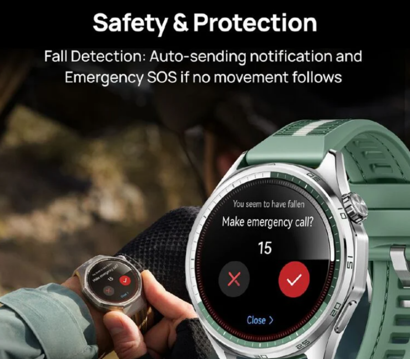 - Safety & Protection: Fall Detection Equipped with long-range IMU sensors, the watch can detect falls and automatically send SOS calls or location messages to chosen contacts. A 5-press crown shortcut provides instant emergency assistance