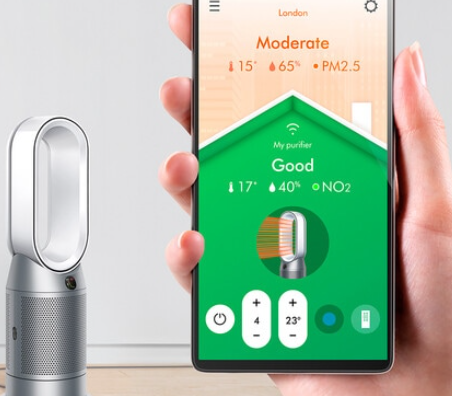 Available in white and silver, as well as black and nickel tones. Air Multiplier technology generates the circulation power to purify the whole room. (In maximum setting. Tested for air projection, purification coverage in a 81m3 room) Control and monitor air your quality from anywhere using the Dyson Link app Control, which is hands-free with compatible voice services. Requires a device to run the app, Wi-Fi or mobile data, Bluetooth 4.0 support, and iOS version 10 or Android version 5 (or above). Standard data and messaging rates may apply.