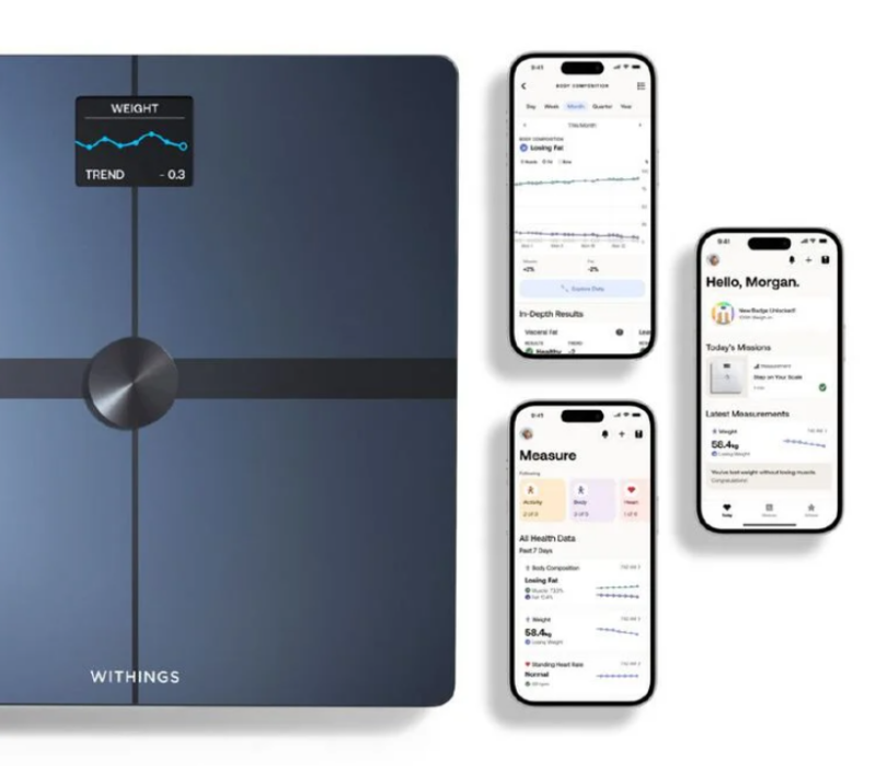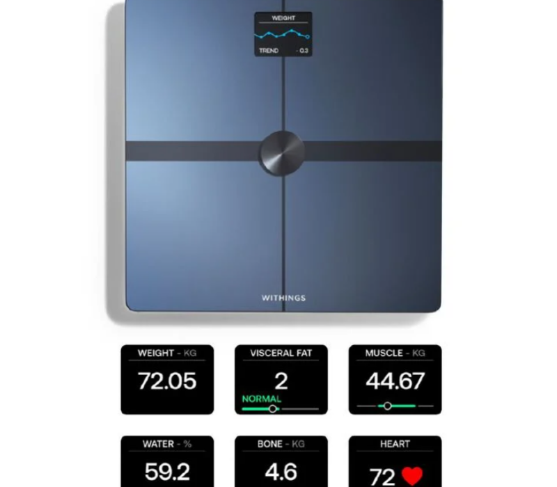 Start your health journey with Body Smart, the ideal smart scale to help you reach your goals.Get consistently precise weight measurements and track 8 advanced body composition metrics, including fat/muscle mass. Powered by Precision Technology and multiple frequencies, Body Smart features additional new metrics like Visceral Fat Index and cardiovascular insights to help you stay on top of your health.Embrace the Withings scale experience, and seamlessly integrate better health into your daily life. Body Smart features a 15-month battery life, a high-resolution colour screen, and automatic tracking for multiple users. Plus, explore dedicated modes for pregnancy, babies and athletes. Enjoy Wi-Fi or Bluetooth connectivity and sync all your health data directly to our highly-rated app. View trends, progress, and daily inspiration for long-term improvement. Thanks to best-in-class data privacy standards, your data is always secure.