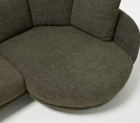 - Back: loose & reversible cushions filled with foam, feather & loose fibre. Rubber webbing for support on inside back