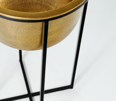 The brass-coloured bowl in this M&Co planter will add a touch of shimmer and shine to your indoor garden space, and the four-legged matte black stand allows it to be positioned securely in any corner of the room. Available in two different sizes.