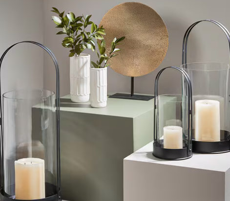 Create a lighting display that reflects your contemporary style with this metal & glass lantern from M&Co. Designed to be used with all your favourite candles, it is easy to move from room to room thanks to its handle & is available in a trio of different sizes