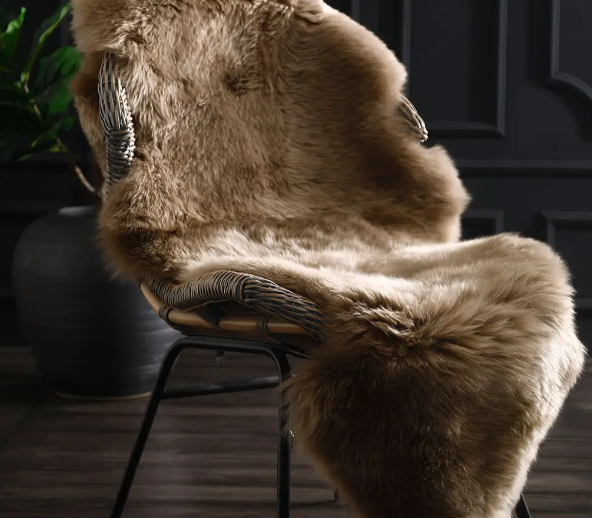 00% New Zealand wool sheepskin rug. The long wool fleece on the sheepskin will add a luxurious layer of textured interest to your home.